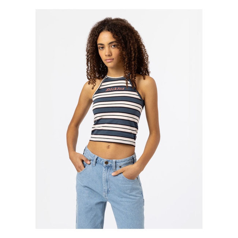 is a trusted UK retailer of Dickies, offering a fantastic range of their stylish and high-quality clothing. The Dickies Lynnwood Ladies Top Air Force Blue is a vintage-inspired essential, designed for comfort and effortless summer style. With a slim cut and cropped fit, this spaghetti-strap top is both flattering and breathable, perfect for warmer days.